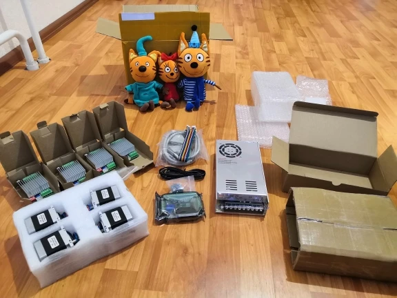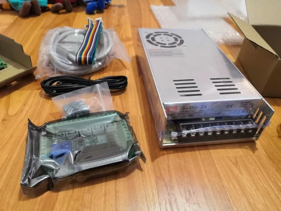 1 x импульсный источник питания 24 В/10 А 4 x одноосевой Драйвер шагового двигателя TB6600 4x57HS56-3004 3A шаговый двигатель 1 x 5-осевая коммутационная плата 1 x параллельный кабель DB25 1 х USB кабель 4 сигнальных кабеля Руководство пользователя на английском языке для 4-осевой платы драйвера отправит компакт-диск или электронную почту