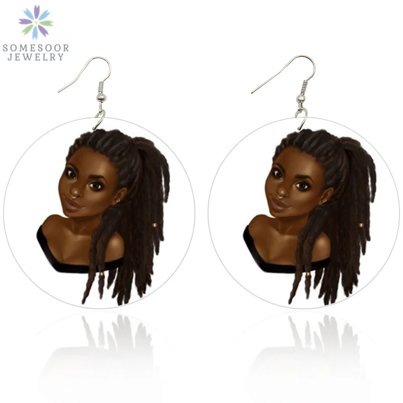 SOMESOOR афро длинные волосы натуральные деревянные висячие серьги черное искусство с обеих сторон картина африканская древесина ювелирные изделия для женщин девушки подарки