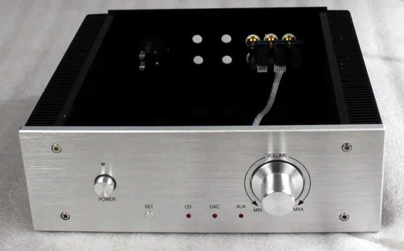 Качество изготовления хорошее, все поверхности и края обработаны добротно. из мелочей отмечу, что плата выбора каналов не встает - слишком длинные ножки светодиодов, пришлось укорачивать, а вот кнопка выбора каналов не достает до платы - пришлось наращивать). Нет винтов для крепления ножек - пришлось искать в закромах. разьем питания 220V в обрыве - один провод пришлось припаять не к штатному выводу, а к проводнику на корпусе. Разъемов в комплекте нет - заказывайте отдельно. А в целом впечатления хорошие - все получилось и усилитель теперь радует глаз. Упаковано было очень хорошо