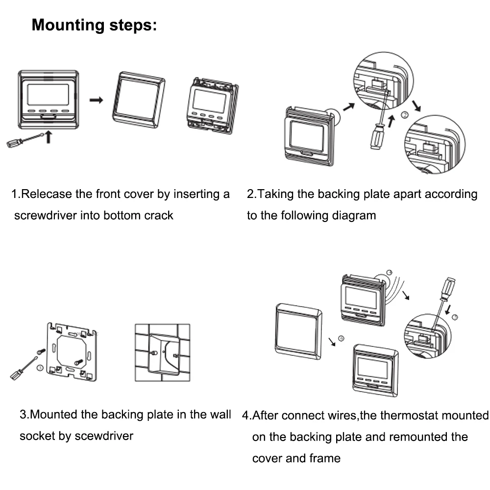 Термостат подходит практически для всех электрических напольных нагревательных изделий (кабель для напольного отопления/коврик, углеродная нагревательная пленка и так далее).