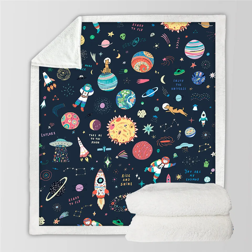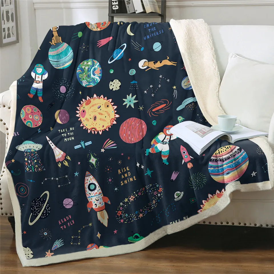 Постельное одеяло BeddingOutlet, голубое флисовое покрывало с космическим космосом, плюшевое постельное белье с космонавтами, планетами, звездами