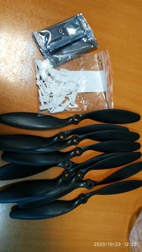 Количество соответствует. Качество, на первый взгляд, среднее (какая-то дешёвая пластмасса). Лёгкие. Брал на самолёт, но похоже они для квадрика. На пропсейвер не лезут, а на цангу моторчика садятся хорошо. Упаковка плохая. Доставка три недели.