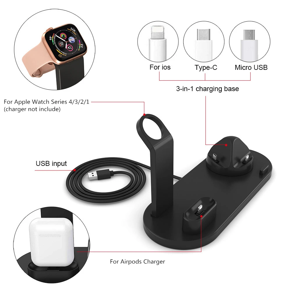 【Многофункциональная Подставка для зарядки 】подставка для зарядки специально разработана как станция для Apple Watch, подставка для AirPods, держатель для мобильного телефона.