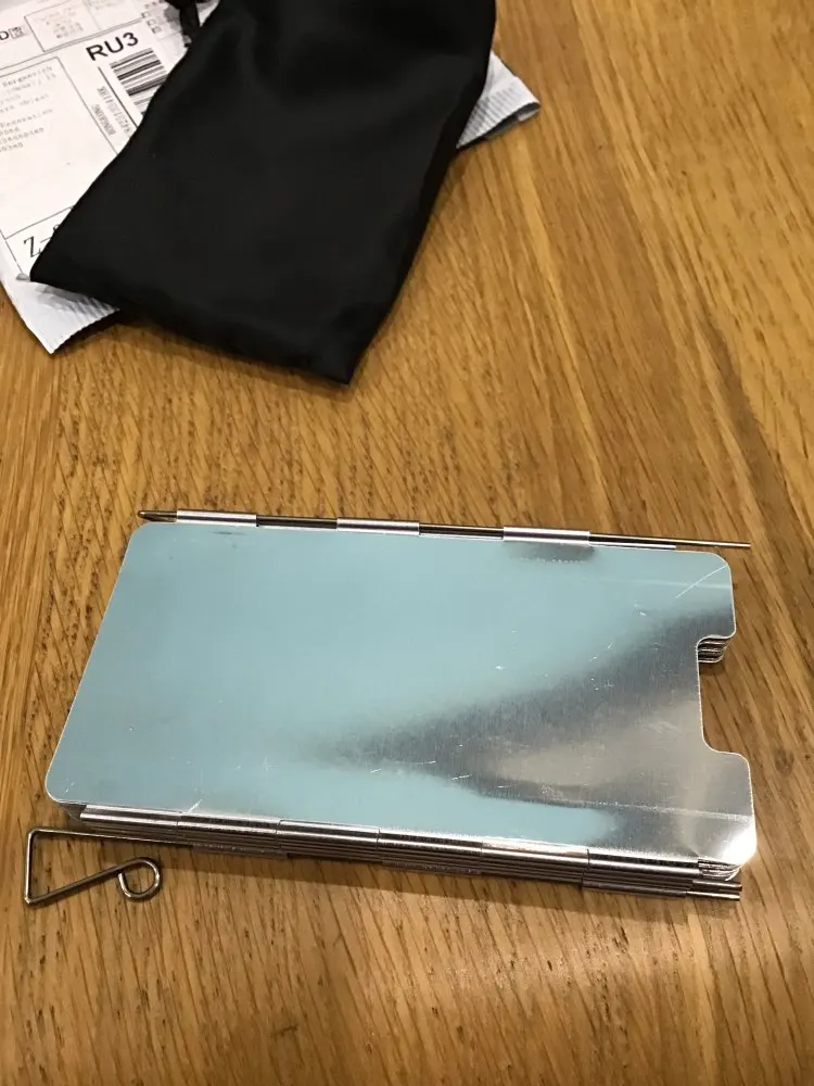 Пластины очень мягкие, на вид толстая фольга, по мне так алюминий должен быть сплава типа Д16Т или аналога. С краев заусенцы не сняты, по этой причине защита цепляется за чехол, собственно стоит хорошо подумать, чтобы покупать её. Аналогичная в магазине стоит в два раза дороже, по качеству несомненно лучше. А так для пробы сойдёт конечно. Из плюсов - довольно большая, пойдет под многие горелки, лишние секции можно снять. С чехлом весит 111,6 г. До Москвы доставили в принципе очень быстро.