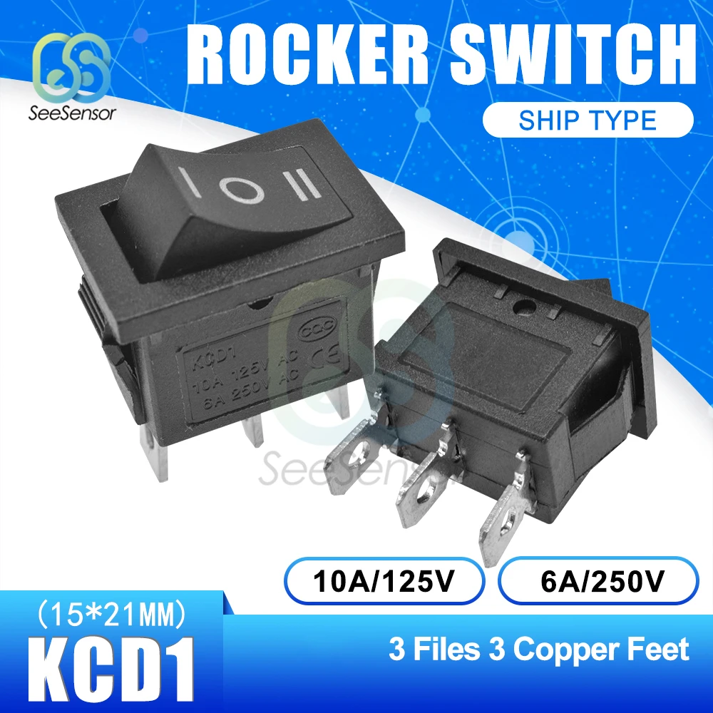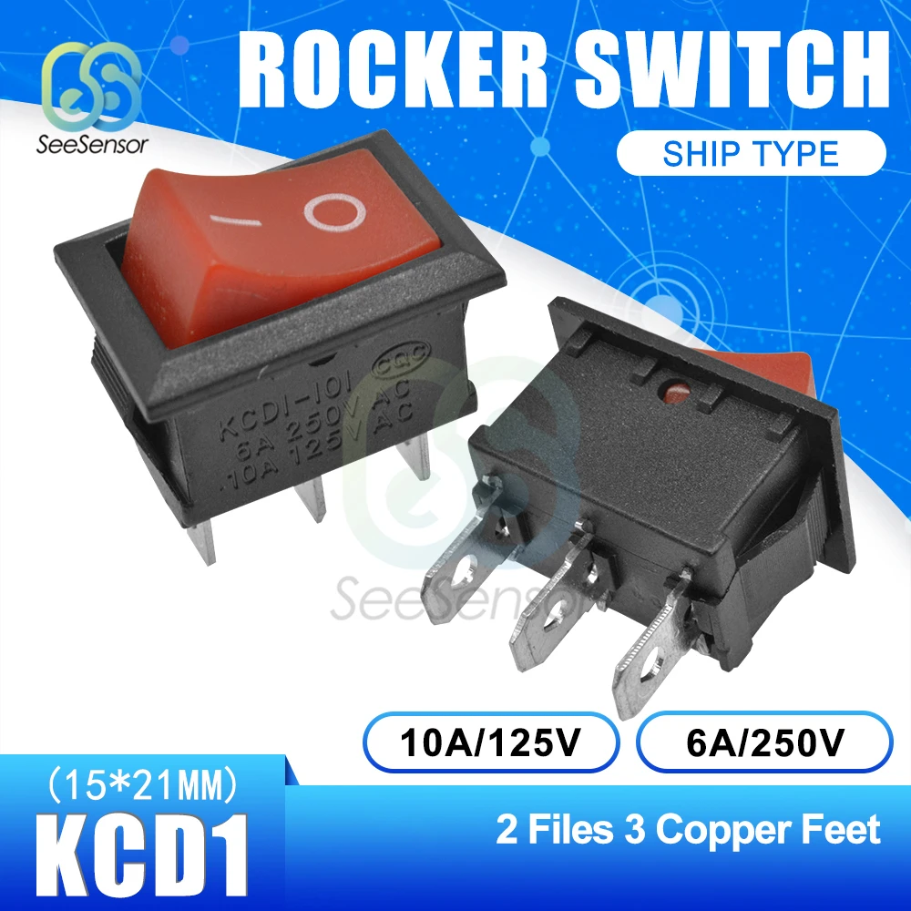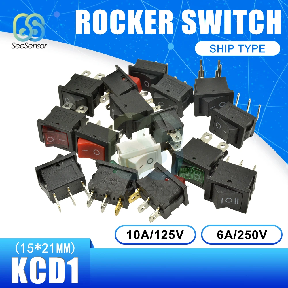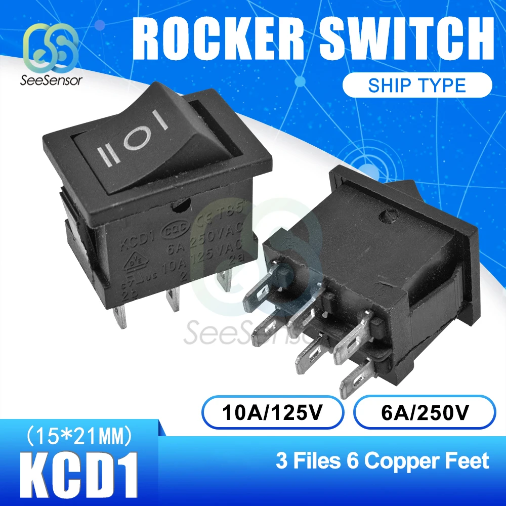 5 шт.лот KCD1 переключатель питания ВКЛ.ВЫКЛ., 2 положения ВКЛ.ВЫКЛ., 3 контакта, 4 контакта, 6 контактов, 6 контактов, 6 А, 250 В переменного тока10 А, 125 В переменного тока