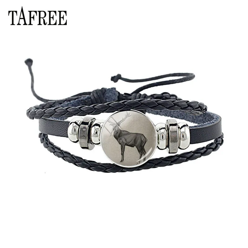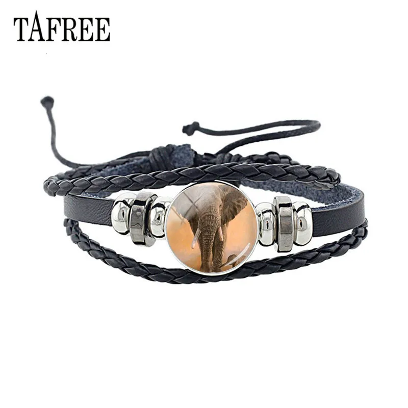 TAFREE, винтажный кожаный браслет с изображением животных оленя, стеклянный слон, леопард, панда, браслет из кабошона, браслеты, ювелирные изделия в стиле панк, A488