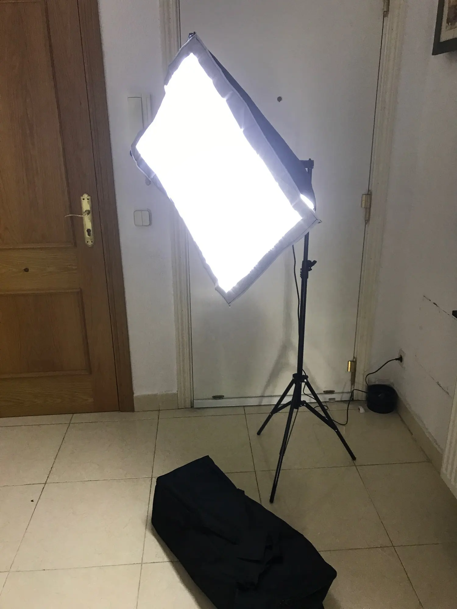 Жаль не было большого чехла для транспортировки. Из особенностей :на максимальной высоте сильно нагружена нижняя трубка в месте где пластиковый фиксатор, что дает не большой не деформируемый прогиб. Пока все целое, посмотрим как жить будет. Вставил лэд лампы Филипс 1300 лм 4000К по 4 шт в каждый : как итог света маловато, буду искать лампы по-ярче. Одна из спиц пришла без набалдашника, пришлось колхозить. Посылка шла два месяца в Киев, привез Мист Экспресс. По функциональности - работает, высота больше 2х метров, но стремно из-за упругой деформации трубки в месте соединения.