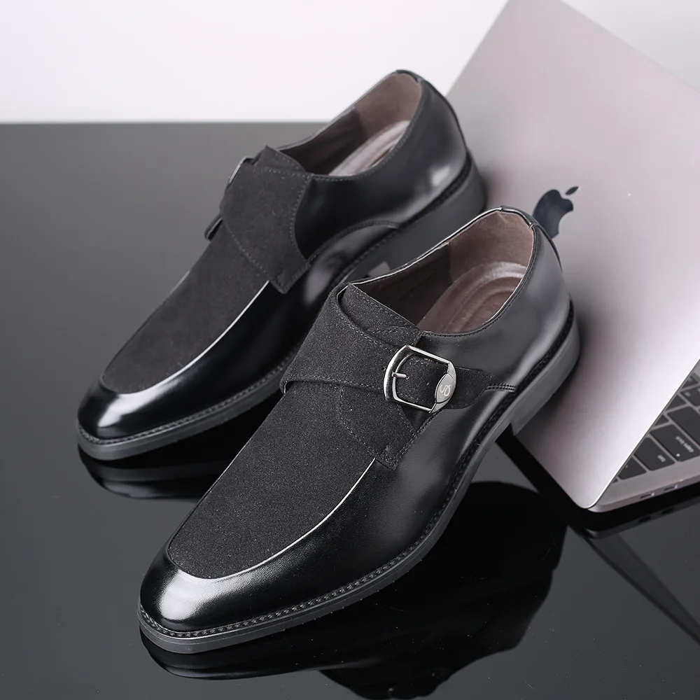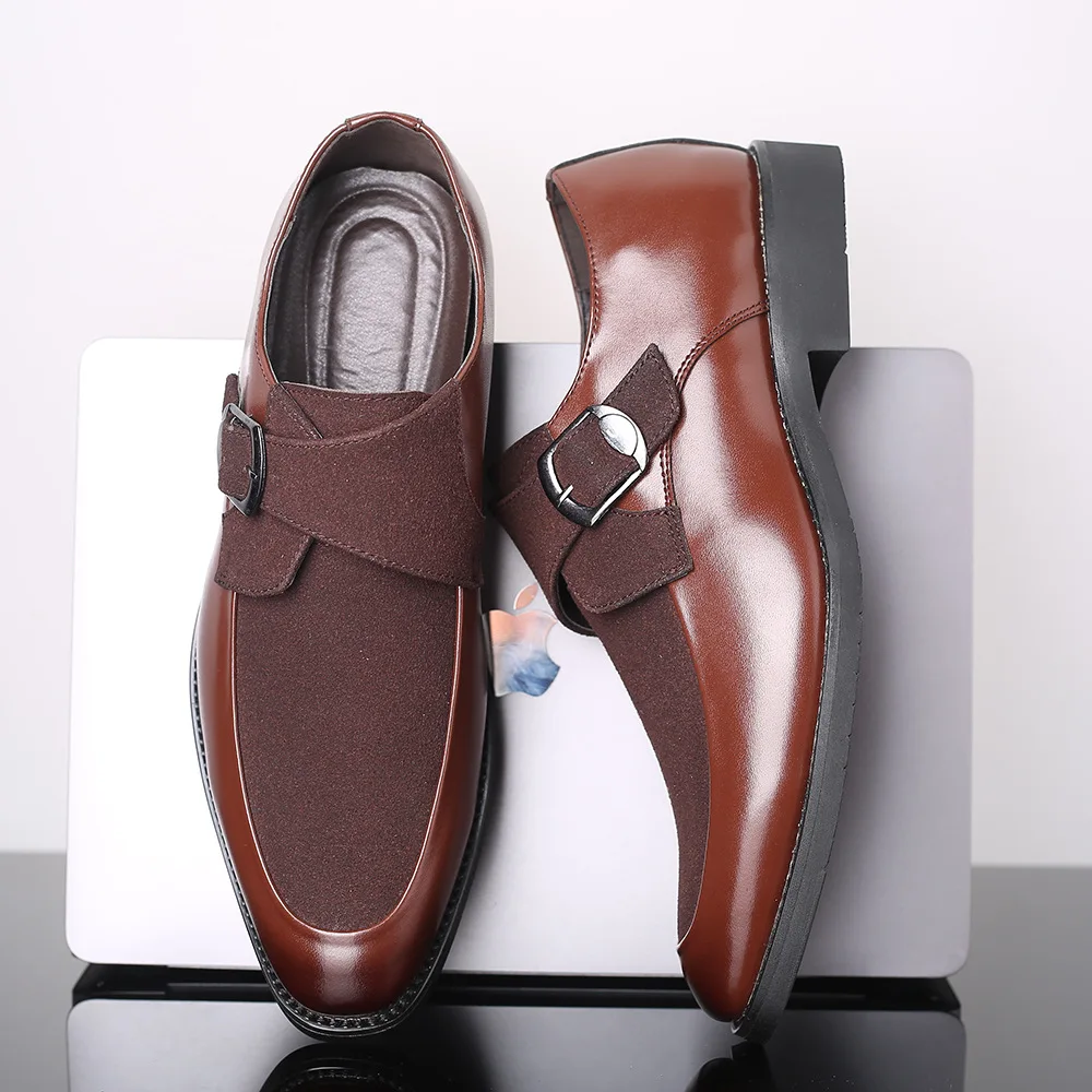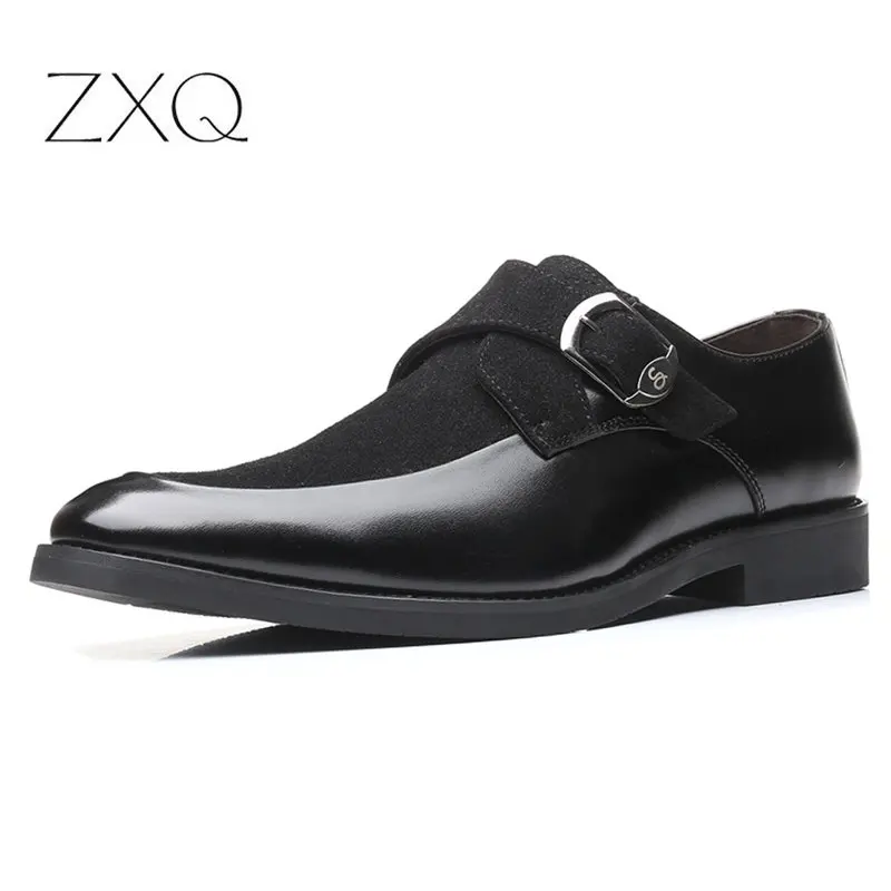 Мужские деловые туфли с ремешком монах, коричневые классические туф...