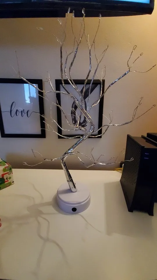 Очень довольна товаром! Прибыл точно по расписанию, прям к новому году подарок. Приятно, что у светодиодов теплый, мягкий свет, который не бьет по глазам. Само дерево и его ветки можно поставить любым удобным для вас образом. Коробка пришла мятая и порванная, к сожалению, но это уже вопросы таможни и почты, поэтому для подарка наверное такое не подойдет, нужно будет упаковывать во что-то другое. Что касается питания, работает как от батареек, так и от usb.