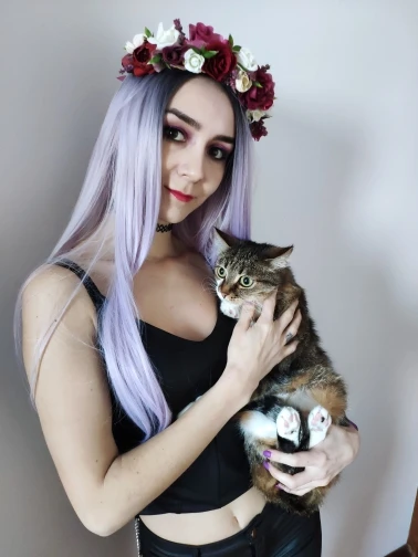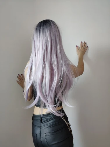 Сиреневый оттенок дан очень тонкими белыми и фиолетовыми прядями, волосы тонкие и обильные, они не сияют чрезмерно. Он довольно дышащий, но его нужно очень аккуратно распутать при каждом использовании, так как суставы волос хрупкие. С надлежащей заботой и осадкой он может легко пройти через настоящие волосы, он имеет очень хорошее производство и очень красивый.