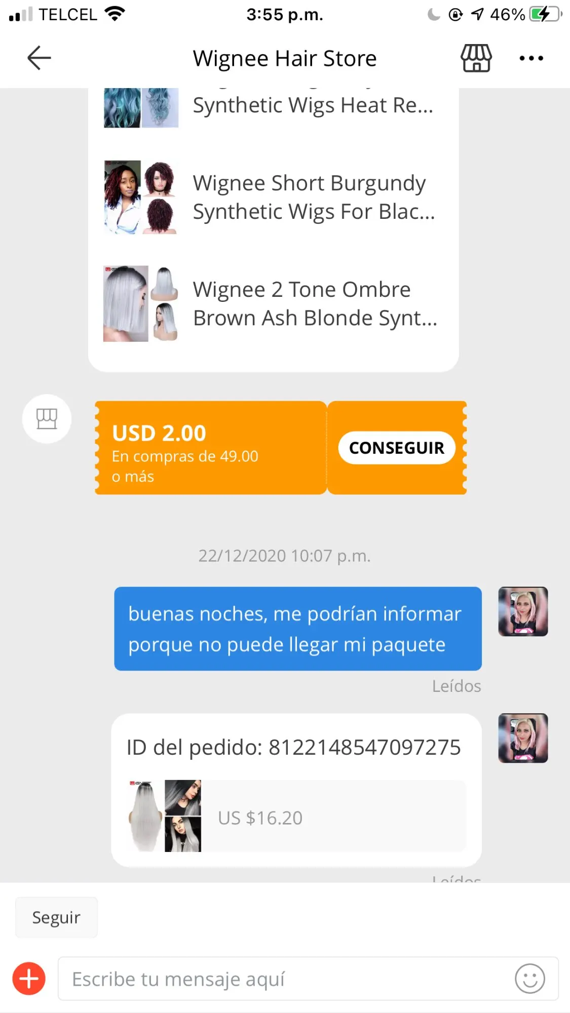 Парик был тем, что я ожидала, цвет он красивый и невероятно полный! Спасибо продавцу, я надеюсь заказать больше продуктов!