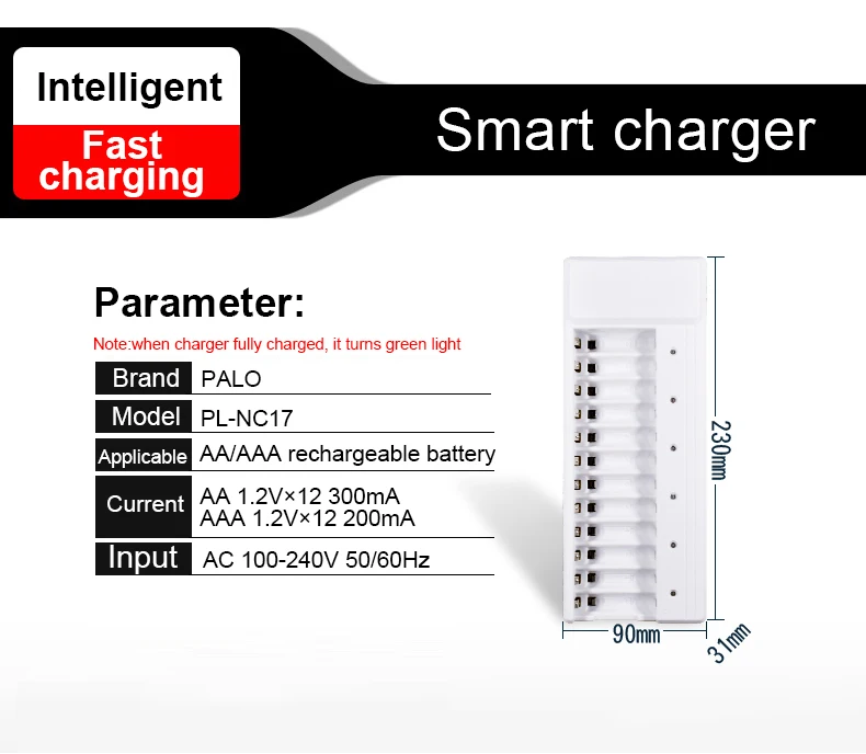 PALO 12 слотов AA зарядное устройство для Ni-MH NI-CD 1.2В AAAAA аккумуляторная батарея светодиодный дисплей Смарт зарядное устройство