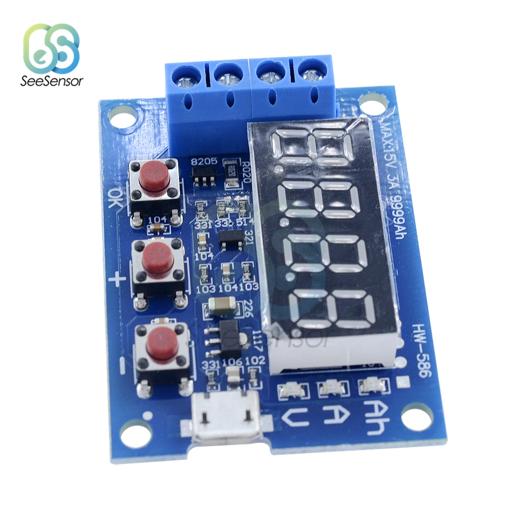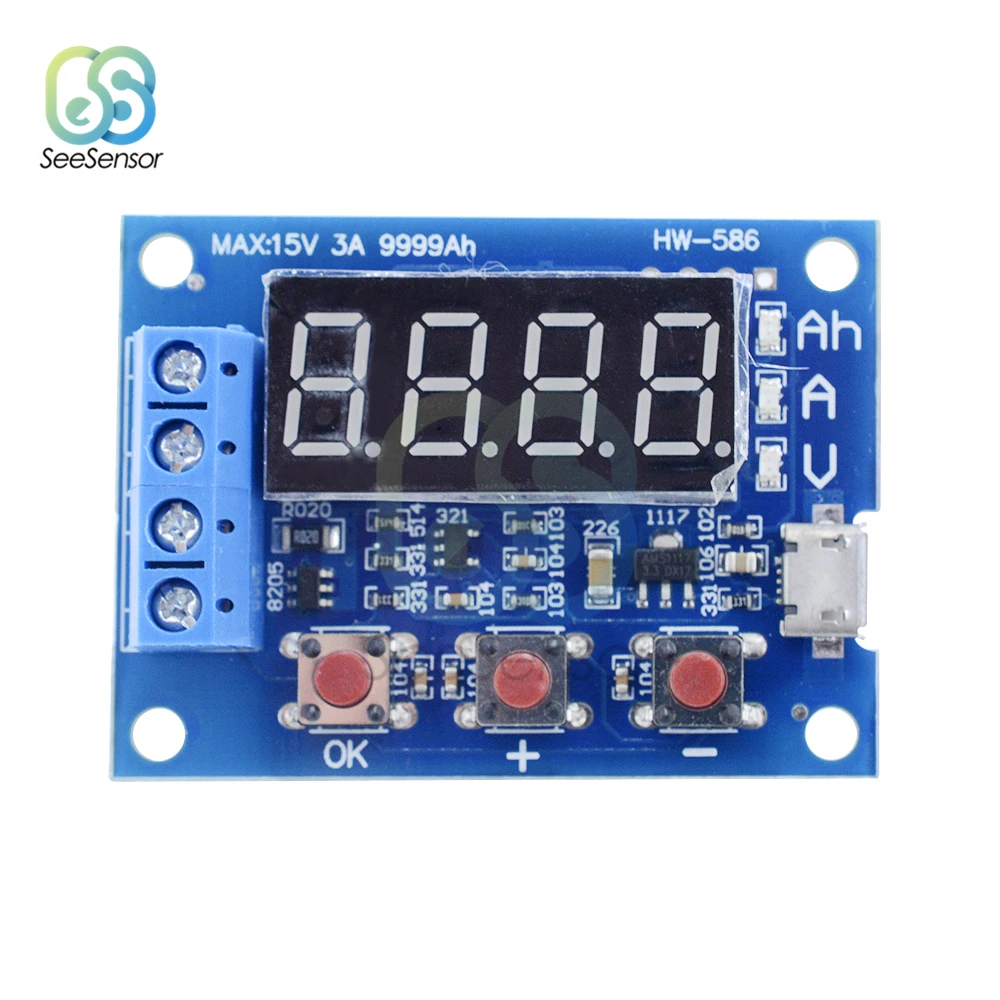 Максимальный диапазон емкости батареи: 9999 Ач (1 Ач = 1000 мАч) большее значение, переключая десятичную точку на переключение, когда дисплей меньше 10 Ач X.XXX, как показано выше для достижения 10Ah XX.XX и так далее.