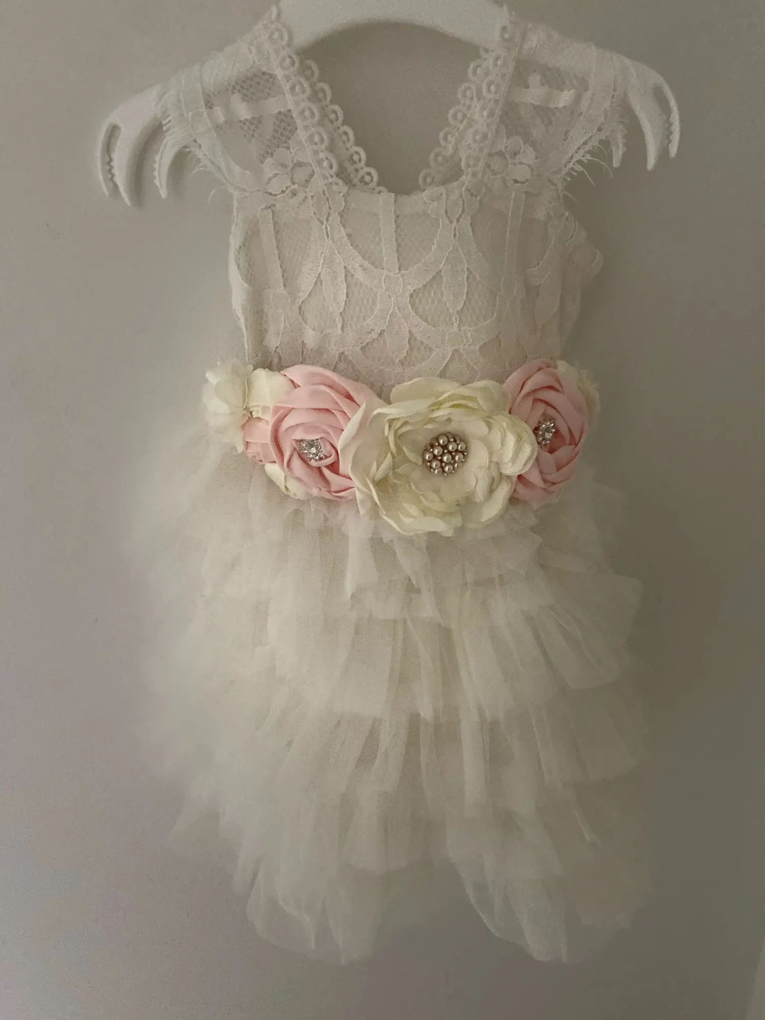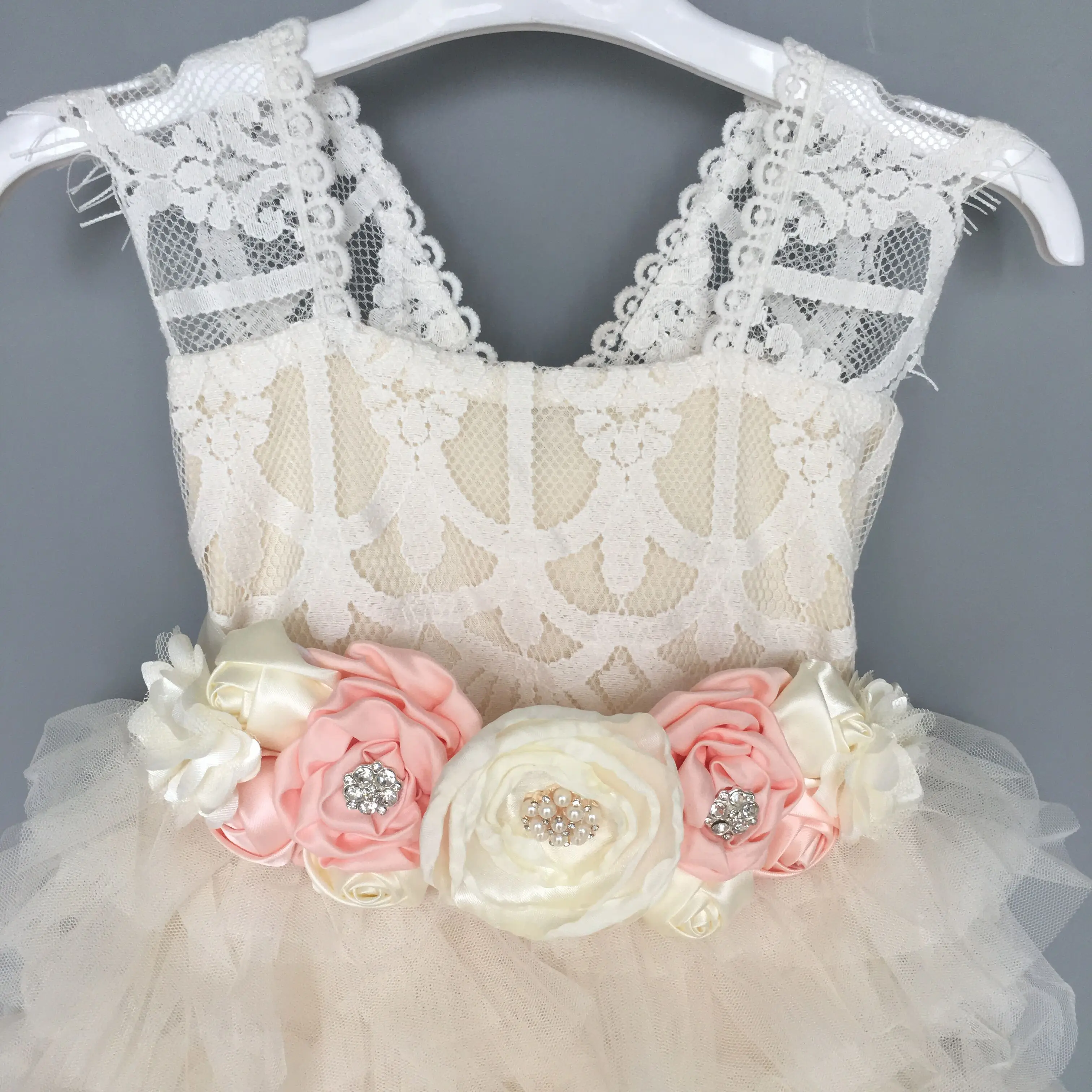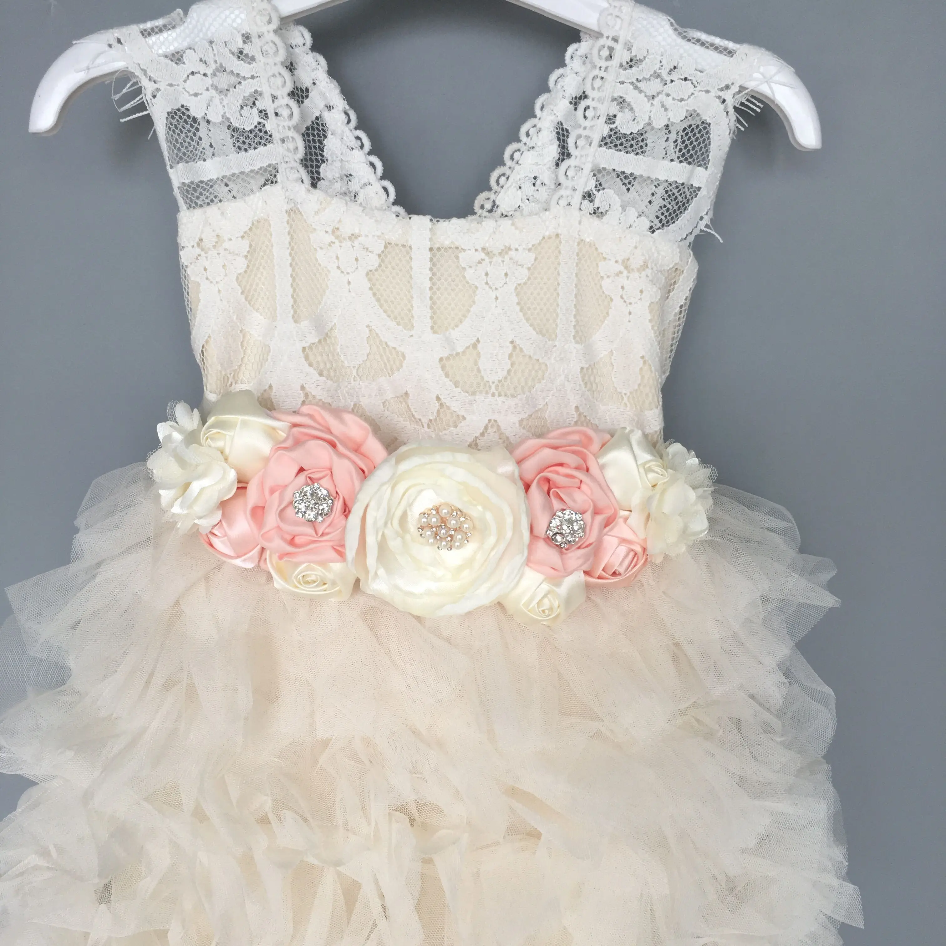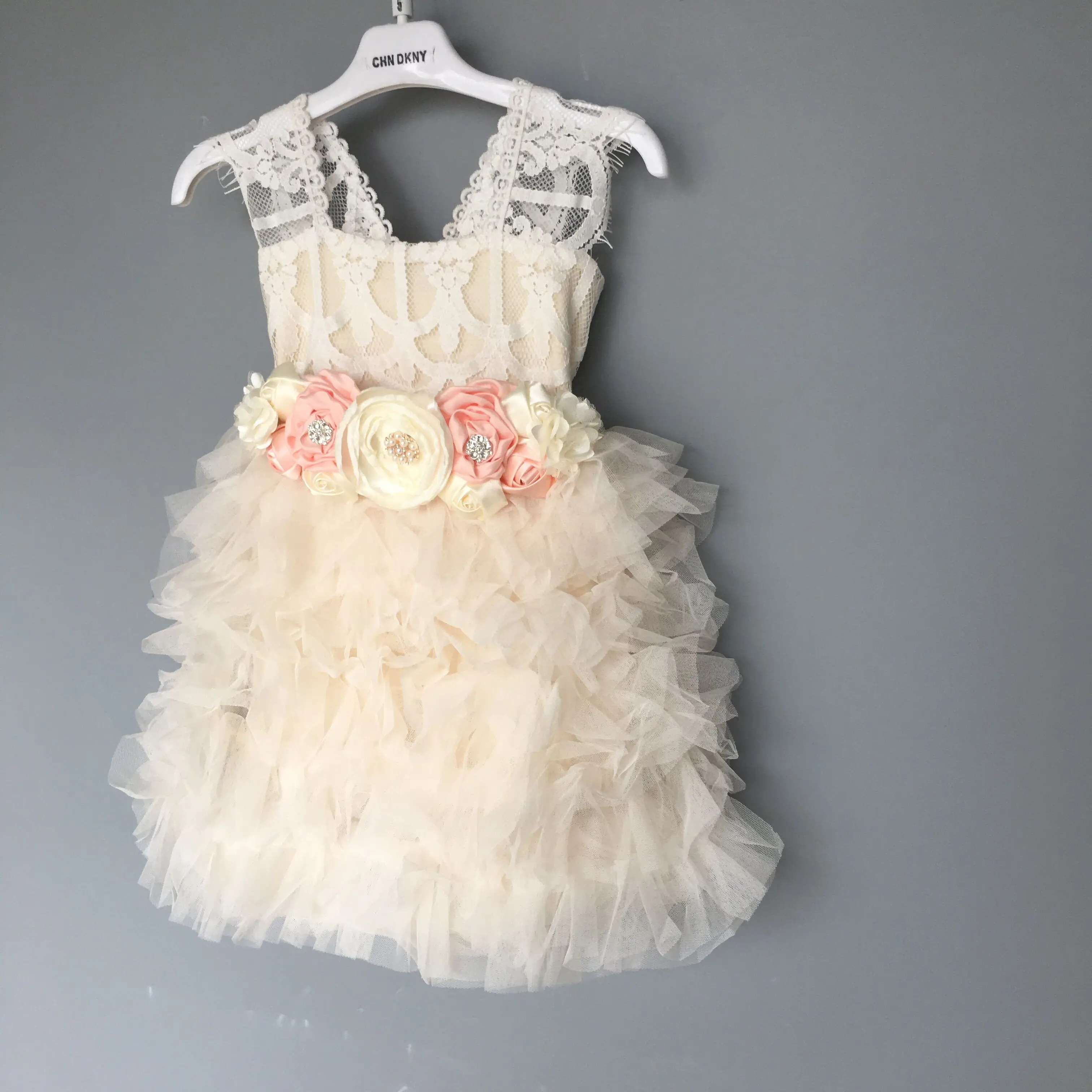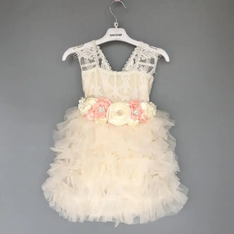 Кружевное Свадебное платье для девочек, с цветочным принтом, с поясом, для вечерние, Хэллоуина, сарафан на лямках