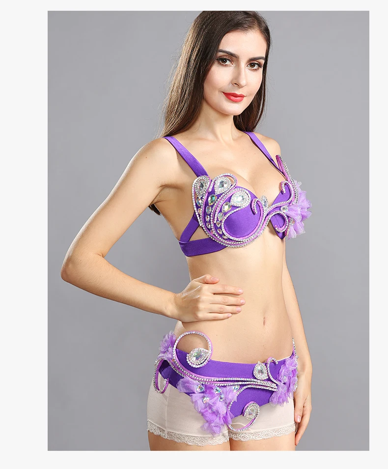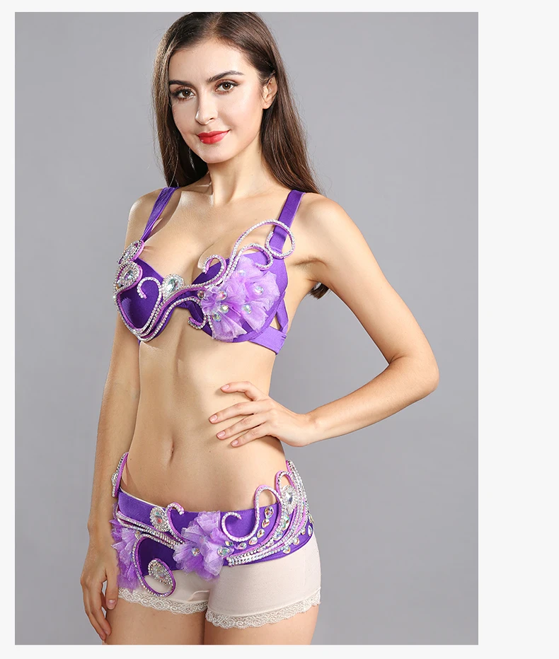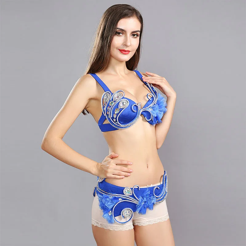 Женский костюм для танца живота, комплект из 2 предметов с бюстгальтером с бисером и поясом для египетского танца живота