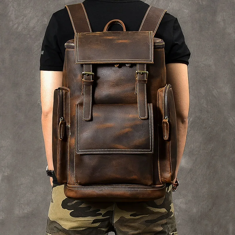 Большой Вместительный Мужской Дорожный рюкзак crazy horse из натуральной кожи 15,6-дюймовый рюкзак для ноутбука Многофункциональный рюкзак школьный рюкзак Mochila