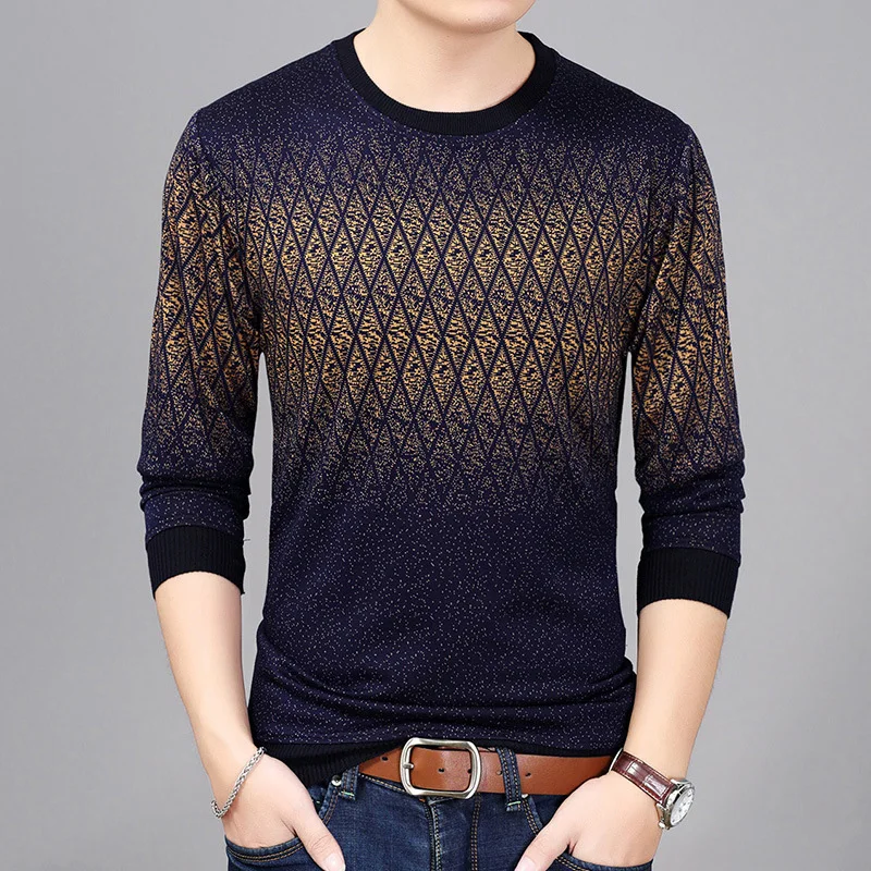 DIMUSI осенне-зимний мужской свитер, рубашка, повседневный мужской свитер с круглым вырезом, мужской облегающий вязаный свитер, одежда