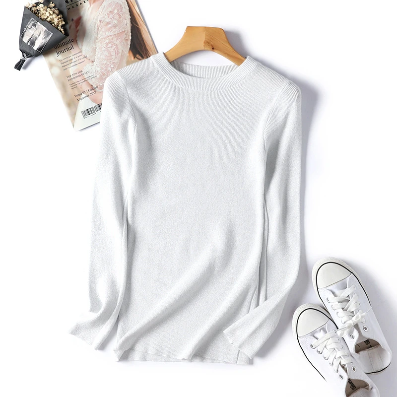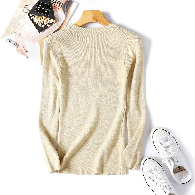 Блестящий свитер с люрексом на осень и зиму, Женский пуловер с длинным рукавом, Женские базовые свитера, женские вязаные топы в Корейском стиле для женщин