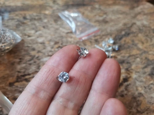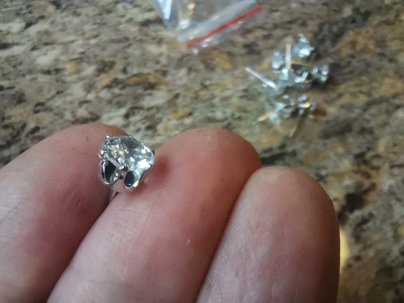 Быстрая доставка, трек отслеживался, лёгкие, "ножка" тоненькая, не похоже что фианиты как пишет продавец