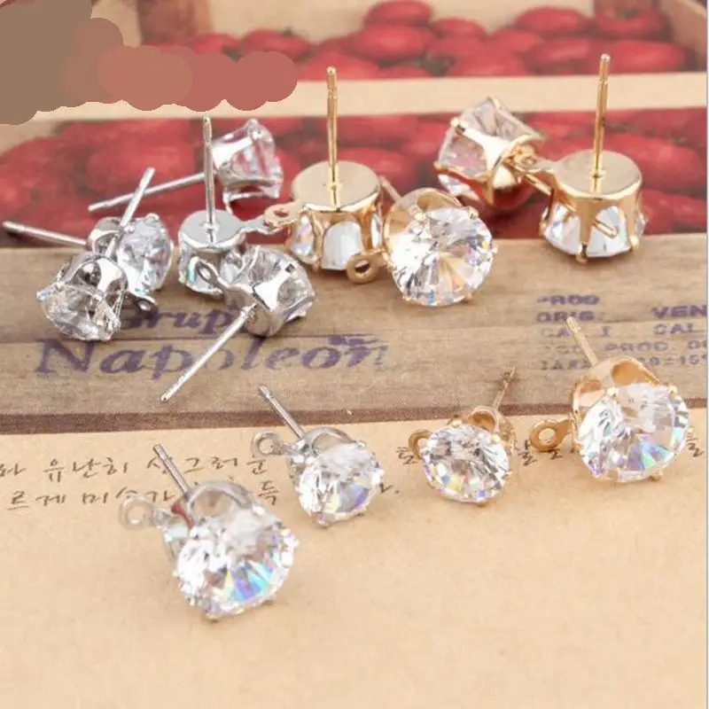 Игольчатые коннекторы для сережек с фианитами, 10 шт.лот