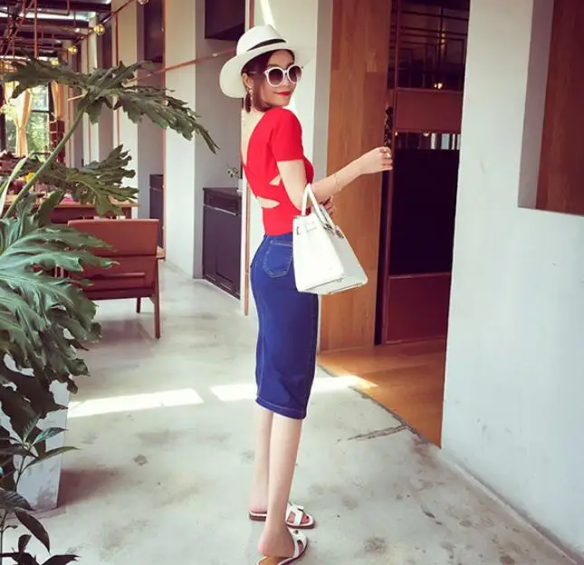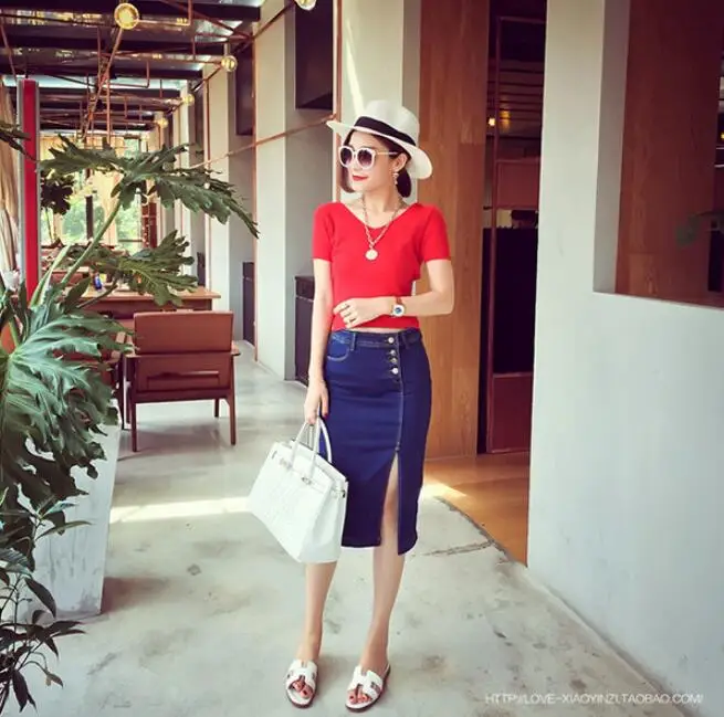 Юбка женская стрейчевая с завышенной талией, юбка-карандаш в Корейском стиле, Модная Джинсовая юбка 2021, XS, Лето Джинсы Midi