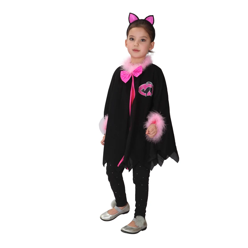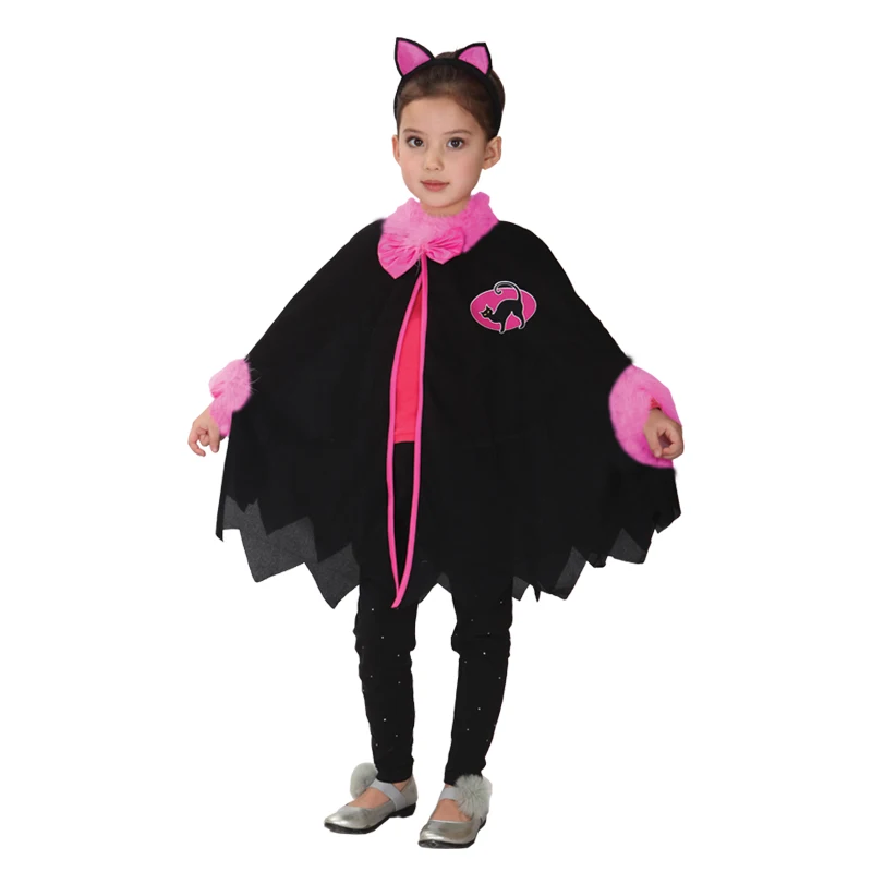 Накидка для девочек, накидка для косплея на Хэллоуин, Новый Год Дети младенец Начинающий ходить малыш, розовый, черный кот костюм котенка, одежда для карнавала, вечеринки