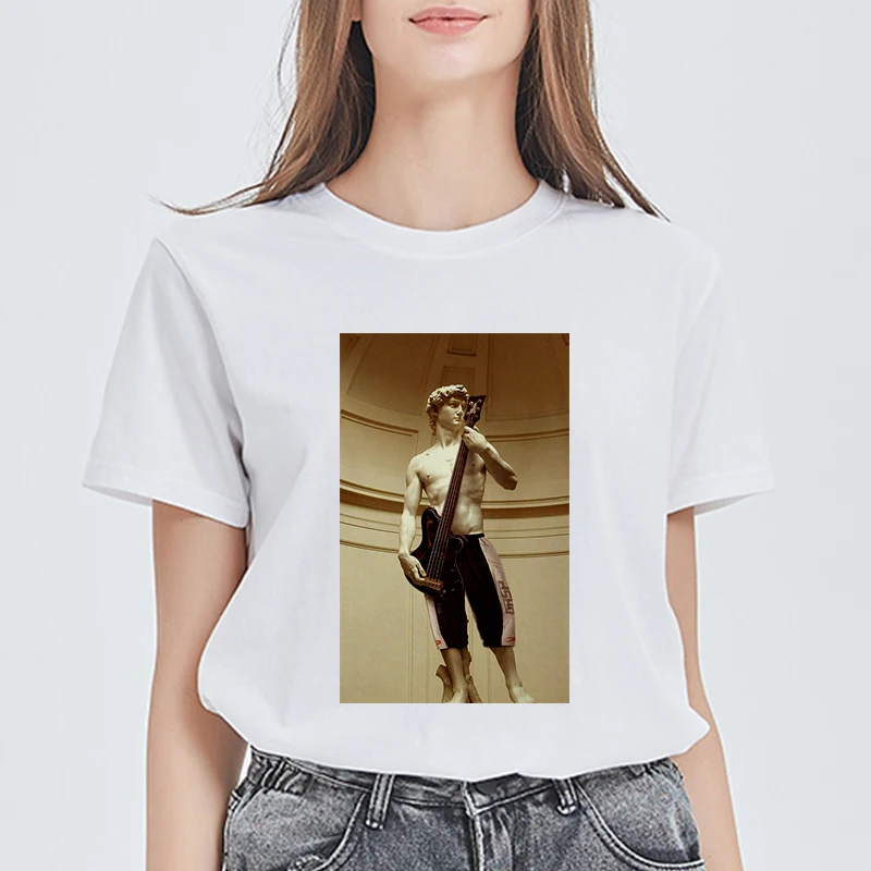 Feature 6Spoof Famous Painting David Funny T-Shirt Women