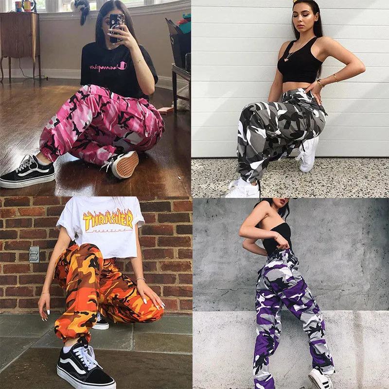 Женские камуфляжные брюки-карго, повседневные длинные брюки с карманами в стиле милитари, армейские Капри, 2019