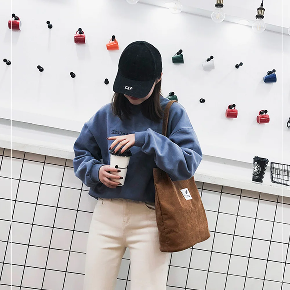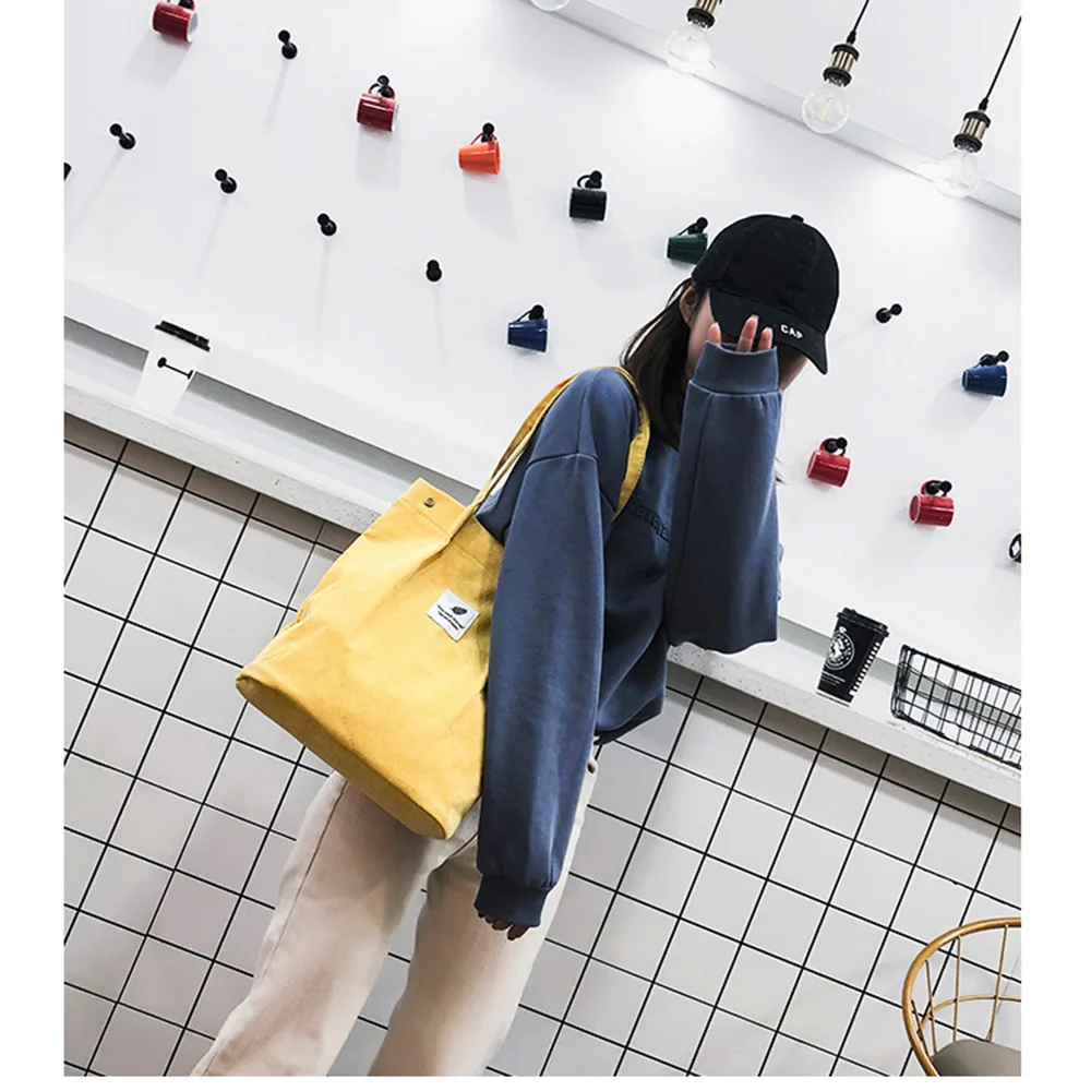 Женская Повседневная Сумка-тоут Mori style, Большая вместительная Холщовая Сумка через плечо, Вельветовая сумка, Повседневная Сумка-тоут, 2019
