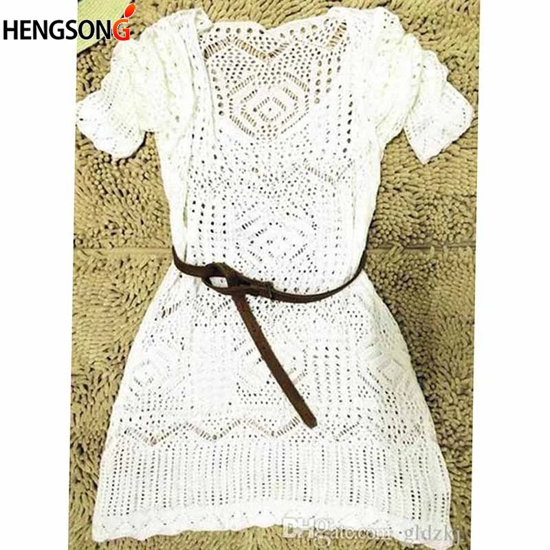 Пляжное мини-платье, сексуальное кружевное ажурное трикотажное пляж...
