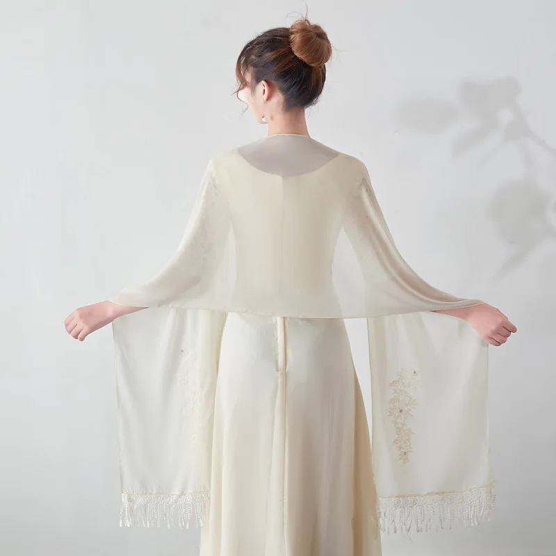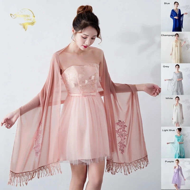 Длинный Шифоновый накидка-болеро, вечерние платья с кружевной аппликацией и бисером, Свадебные Шали, накидки с кисточками, свадебные накидки, женский шарф для вечеринки