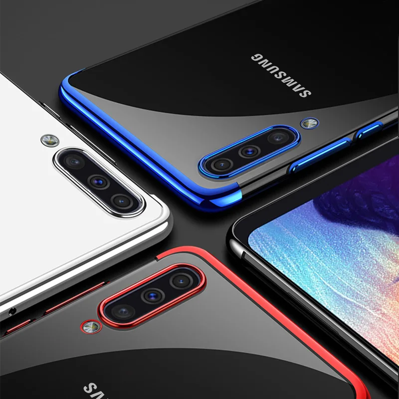 USLION гальванический прозрачный мягкий чехол для телефона Samsung Galaxy A50 A30 A70 A80 A90 M30 M20 M10 прозрачный силиконовый чехол из ТПУ
