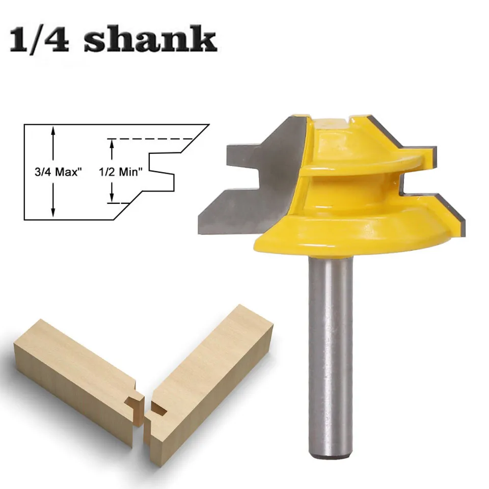 1 шт. 6,35 мм хвостовик 45 градусов твердосплавный замок торцовочный фреза 14 дюйма хвостовик фреза по дереву для соединения шип-паз фреза Инструменты сверлильный фрезерный станок