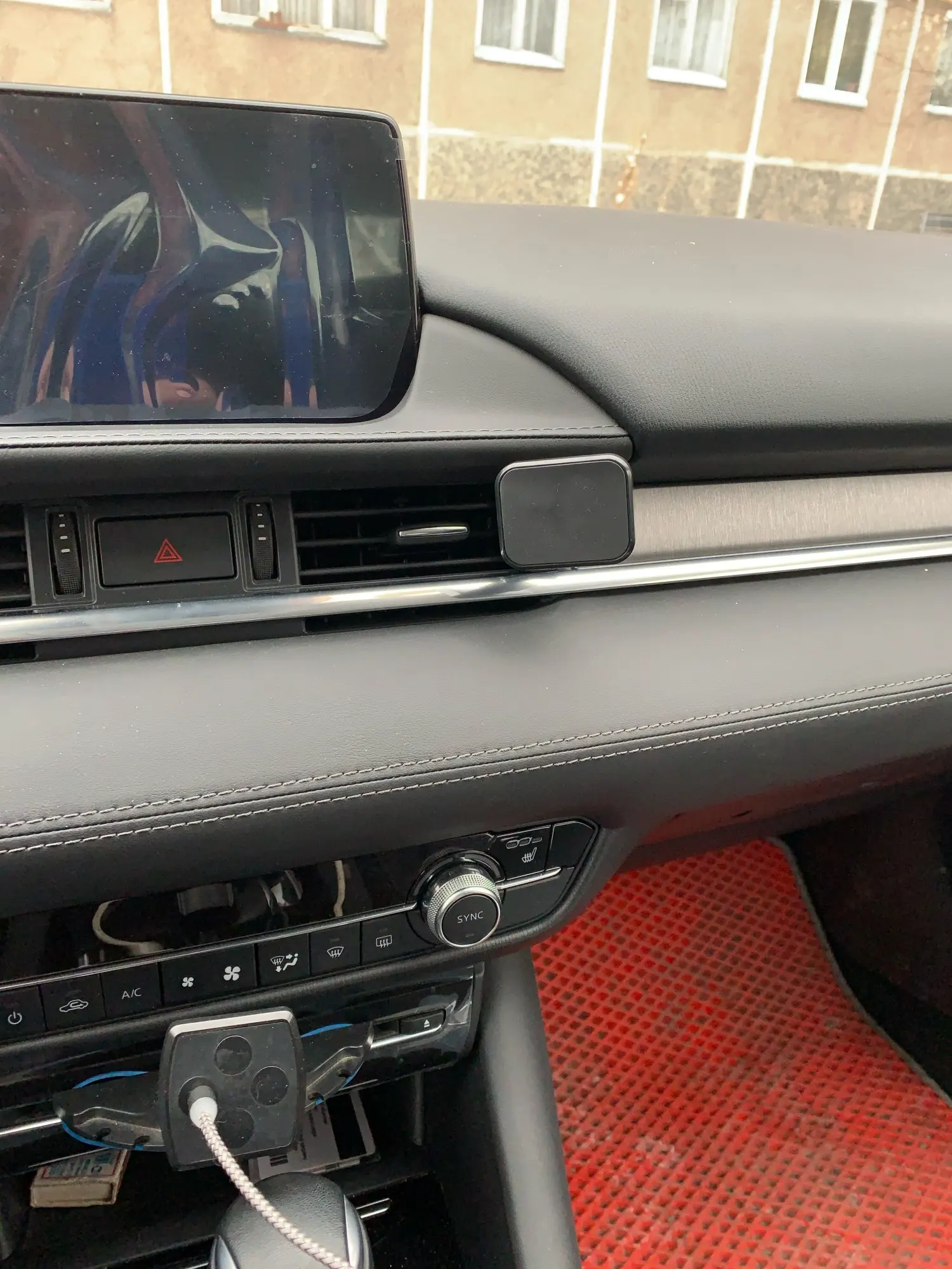да отлично держит в отличие от круглых с которых падал. Затягивается намертво. Ещё плюс то что есть зазор см 5 от дефлектора воздуховода, это намного удобнее, чем когда лежит на панели. Ехал довольно долго.
