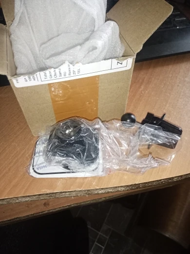 Пришел в коробке, которую вскрывали на таможне, наверное. Целый. Проверим, как закрепится в машине. Магнит держит крепко. Есть угловой люфт, что несколько раздражает, но посмотрю, может, после установки он пропадет или уменьшится.