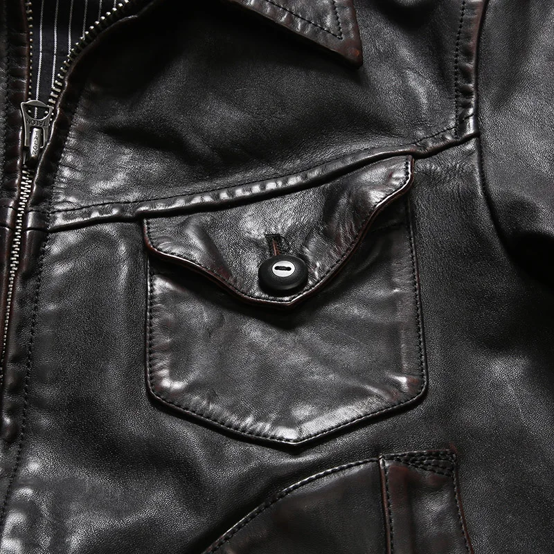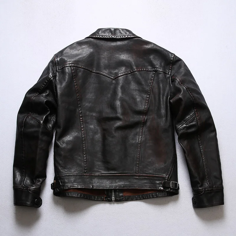 Бесплатная доставка. Оригинальное пальто из конской шкуры, Мужская роскошная винтажная Коричневая Кожаная куртка. Качественная приталенная кожаная одежда