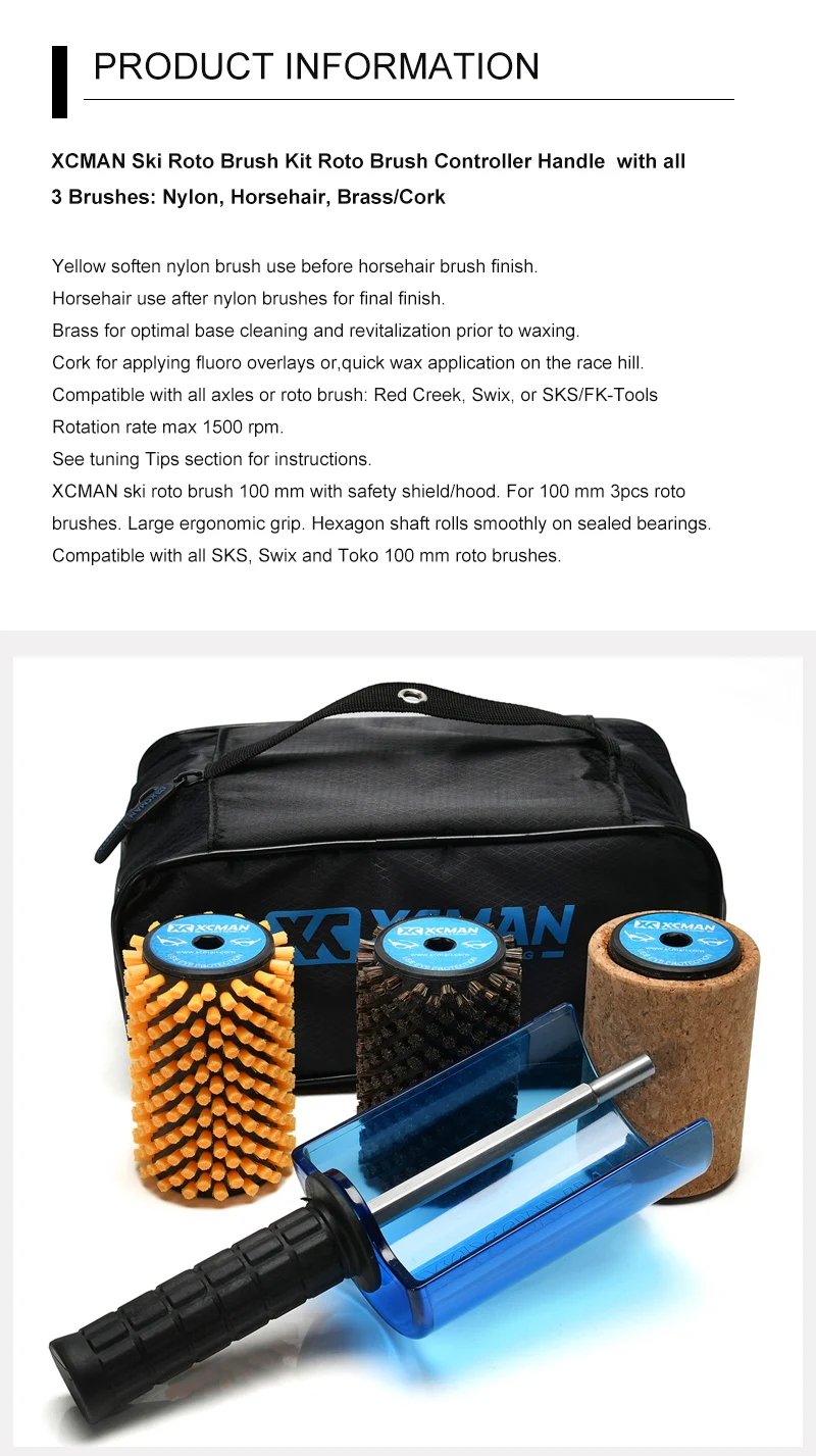 Щетка XCMAN для лыж, Roto, контроллер, ручка со всеми 3 щетками: нейлон, конский волос, латуньпробка