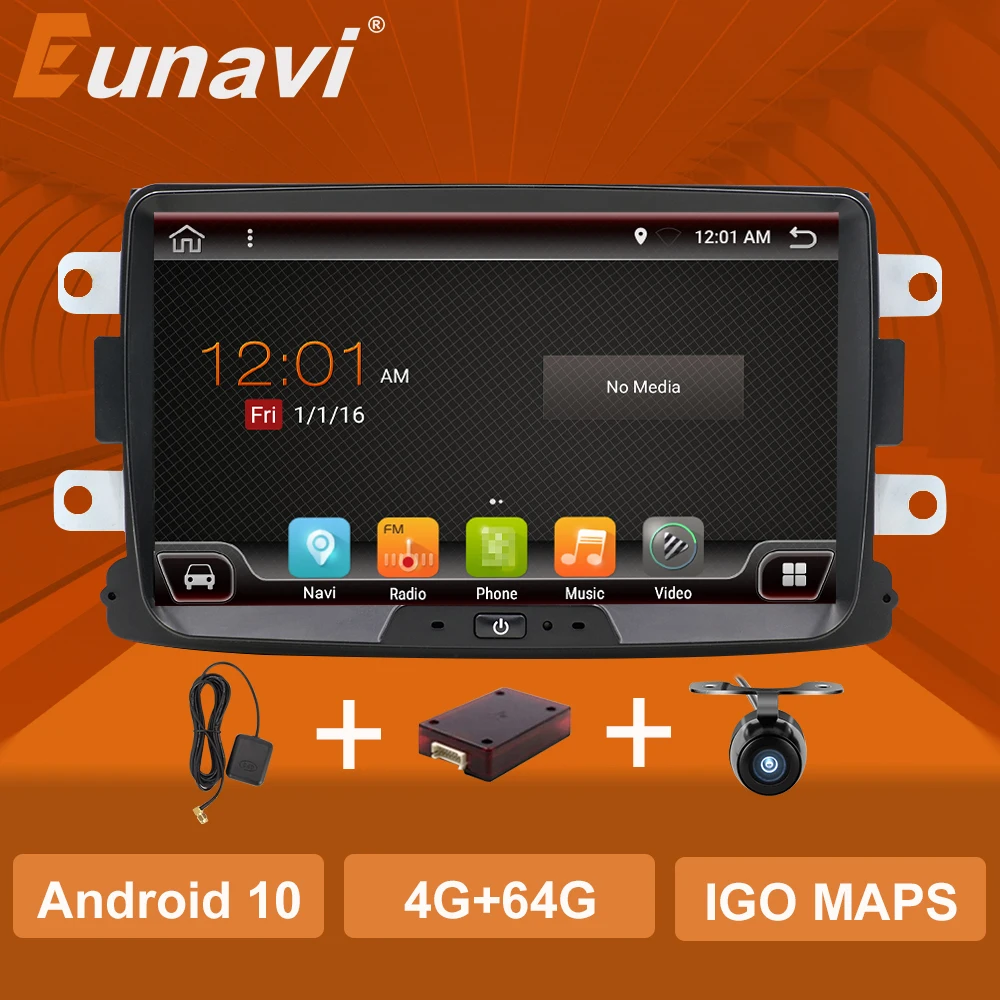 Автомагнитола Eunavi, головное устройство 9 дюймов на платформе Android 10 с GPS-навигацией для Renault Dacia Duster Sandero Lodgy Dokker, Типоразмер 1 Din