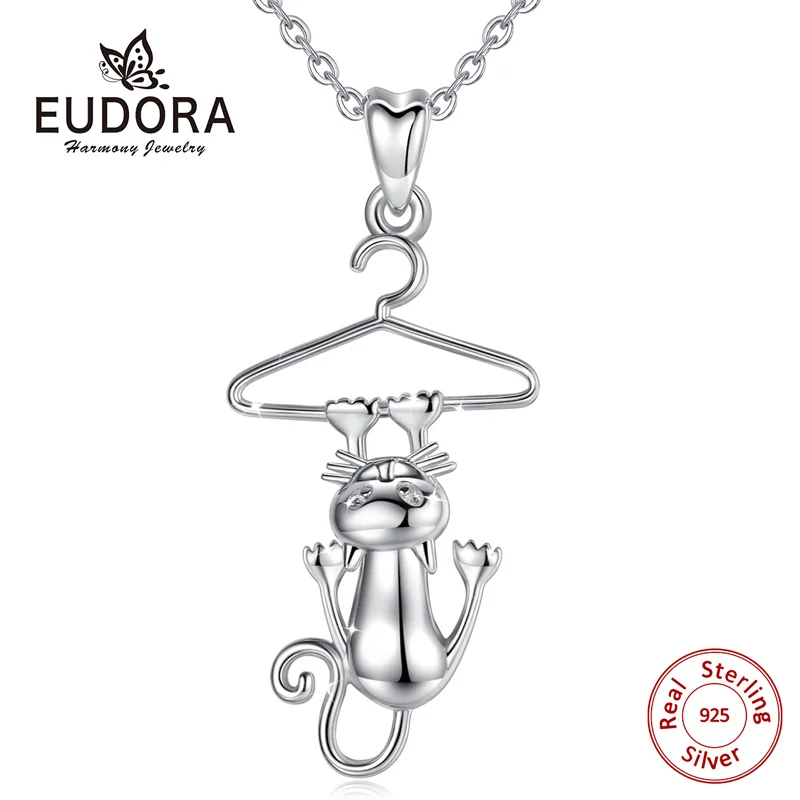 Юдора Настоящее серебро 925 пробы забавный кот кулон ожерелье в виде животного стерлингового серебра ювелирные изделия для женщин Изысканный вечерние подарок D412
