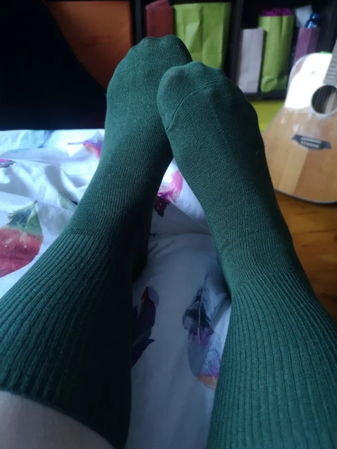 Очень классные носки, тонкие, хлопковые и длинные. То что мне было нужно). На мою супер узкую ногу нигде не топорщатся и не собираются, но и тянутся хорошо, думаю на полную ногу тоже подойдут. Резинка не давит. Под тёплые платья и кроссовки можно красиво их присборить. Цвет приятный бежевый.