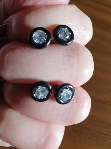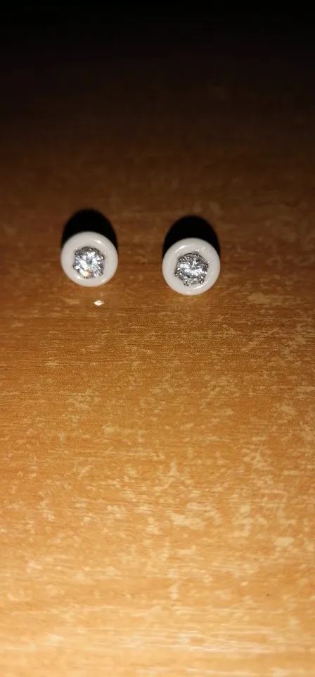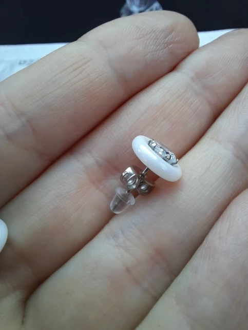 Обожаю эти гвоздики. Ношу такие же, но других цветов уже несколько лет. Теперь купила с жёлтым камушком. Камушки блестят и переливаются как драгоценные, фото не передаёт, к сожалению. В комплекте и металлические и силиконовые заглушки, металлические очень качественные - прекрасно фиксируют серёжки и спустя 4 года носки. Ушки не болят ни разу (я аллергик). Единственное что... не рекомендую в них мыться, плавать. От контакта с водой, через какое-то время, керамический кружок отклеится от штыречка с камушком, но приклеить не проблема и они опять как новенькие!))) Прикупила себе все вариации....люблю их ❣️