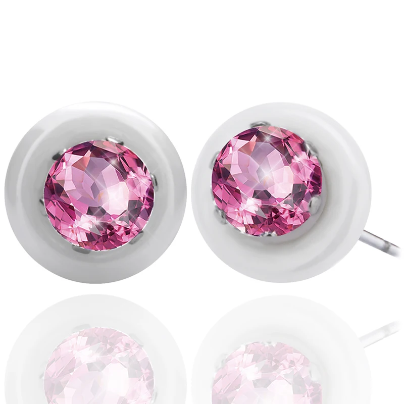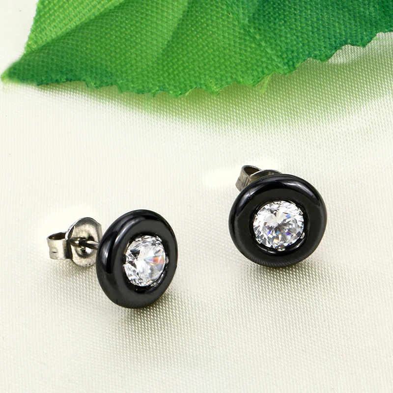Модные свадебные серьги-гвоздики, черные, белые, розовые, керамические, с цветными кристаллами, большого карата, AAA