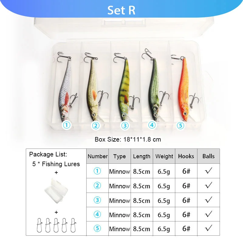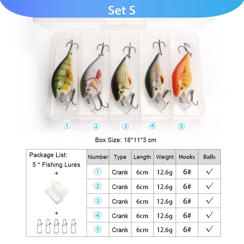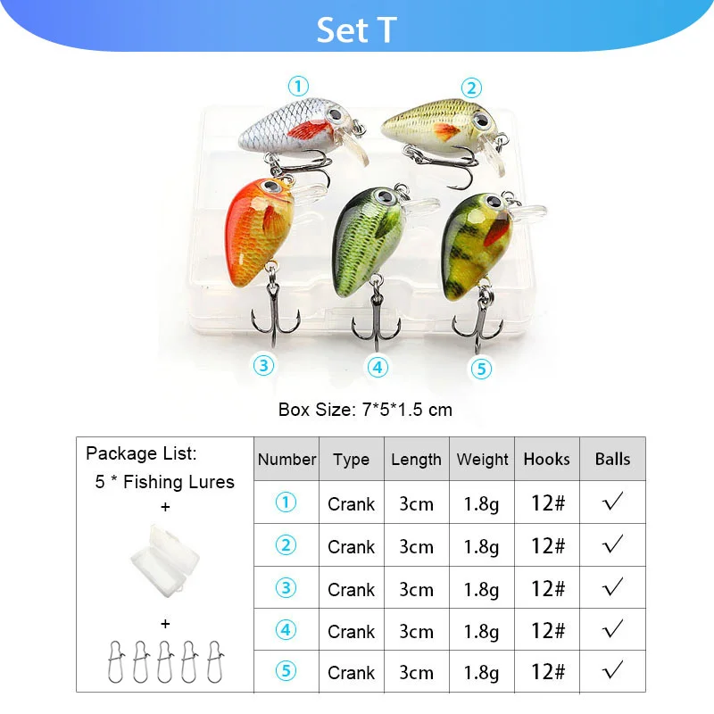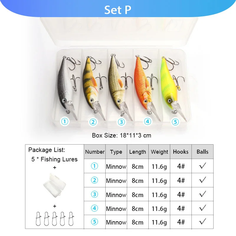 VTAVTA 5 шт. рыболовные приманки набор воблеры и крутящиеся приманки Рыболовная коробка для воблеры свимбейт искусственные приманки набор жесткие приманки рыболовные снасти