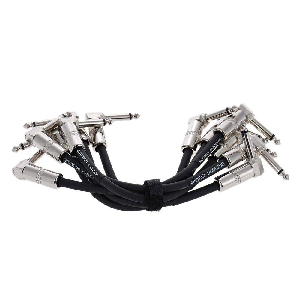 Ammoon 6-Pack Гитара педаль эффектов инструмент патч-кабель 30 см1 фут длиной с 14 дюйма 6,35 мм Серебряный Прямоугольный штекер черный ПВХ