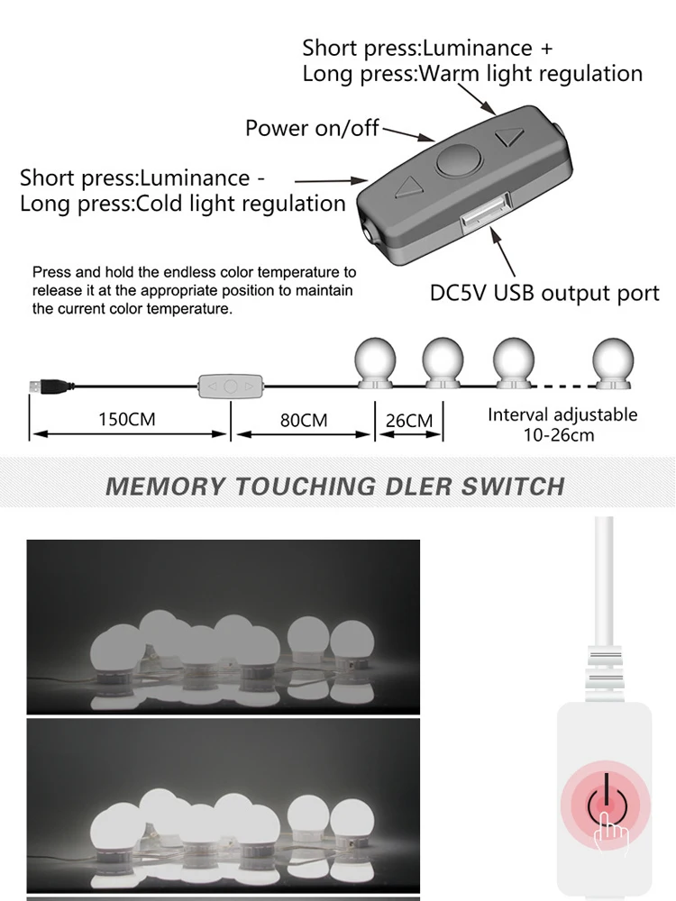 5, 5 настроек яркости, холодный и теплый, бесступенчатый цвет