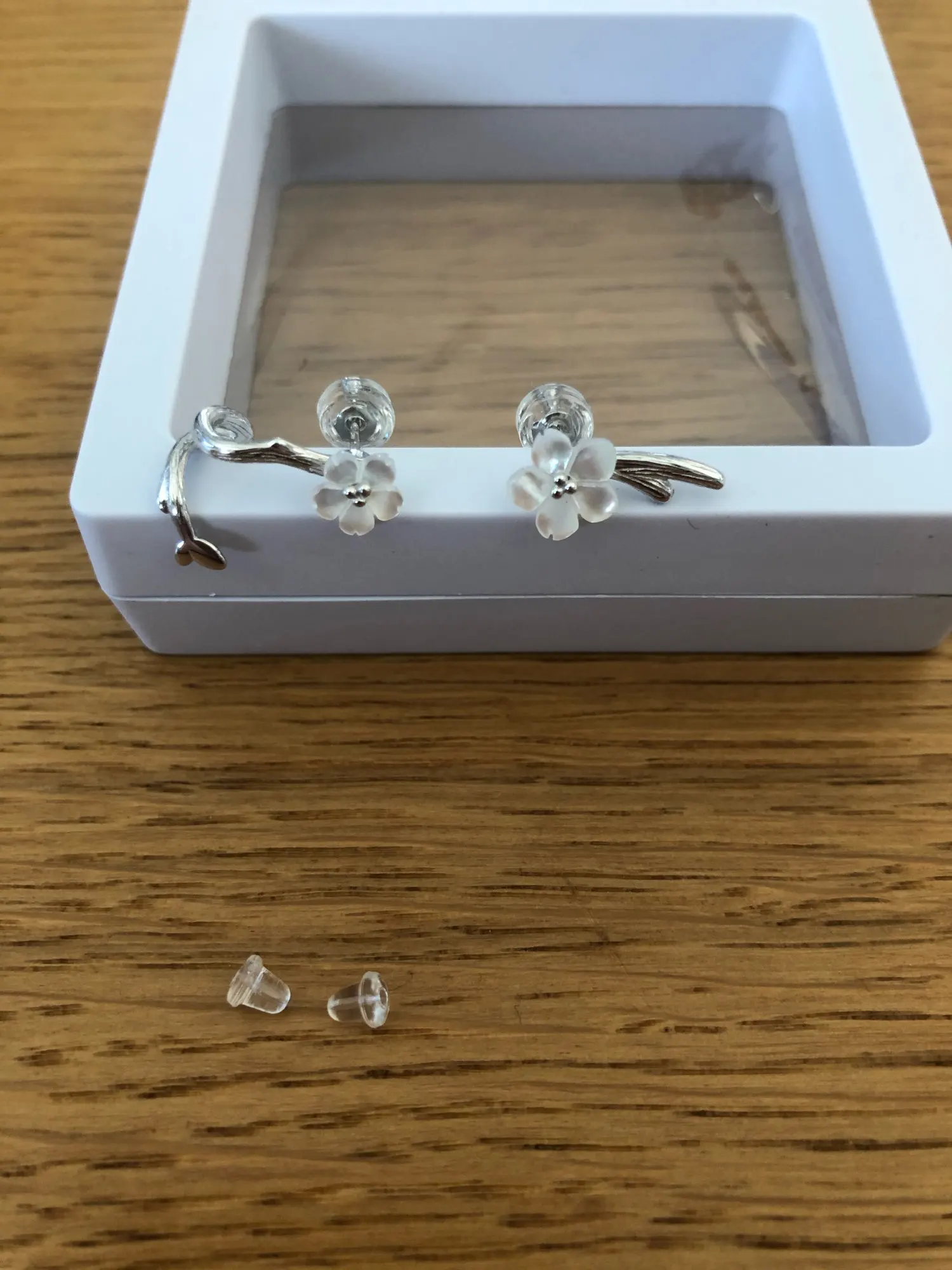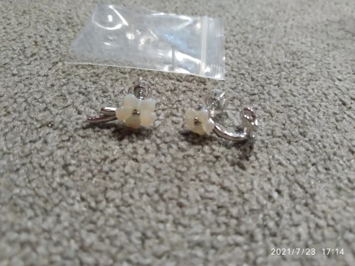У меня сильная аллергия на любой металл кроме золота и серебра. Поэтому мои уши лучший индикатор того, что серьги действительно сделаны из серебра, а не какого-то сплава. Цветочки разного размера, но при ношении это совсем не заметно. Так как у меня очень маленькая и тонкая мочка уха, то каффа проворачивается вниз (см. 3 фото). Но я звезды не снимала, так как это особенности строения моей ушной раковины. Упакованы очень хорошо, в прозрачную пластиковую коробочку, продавец отправил заказ сразу же, доставка 20 дней, несмотря на майские праздники.