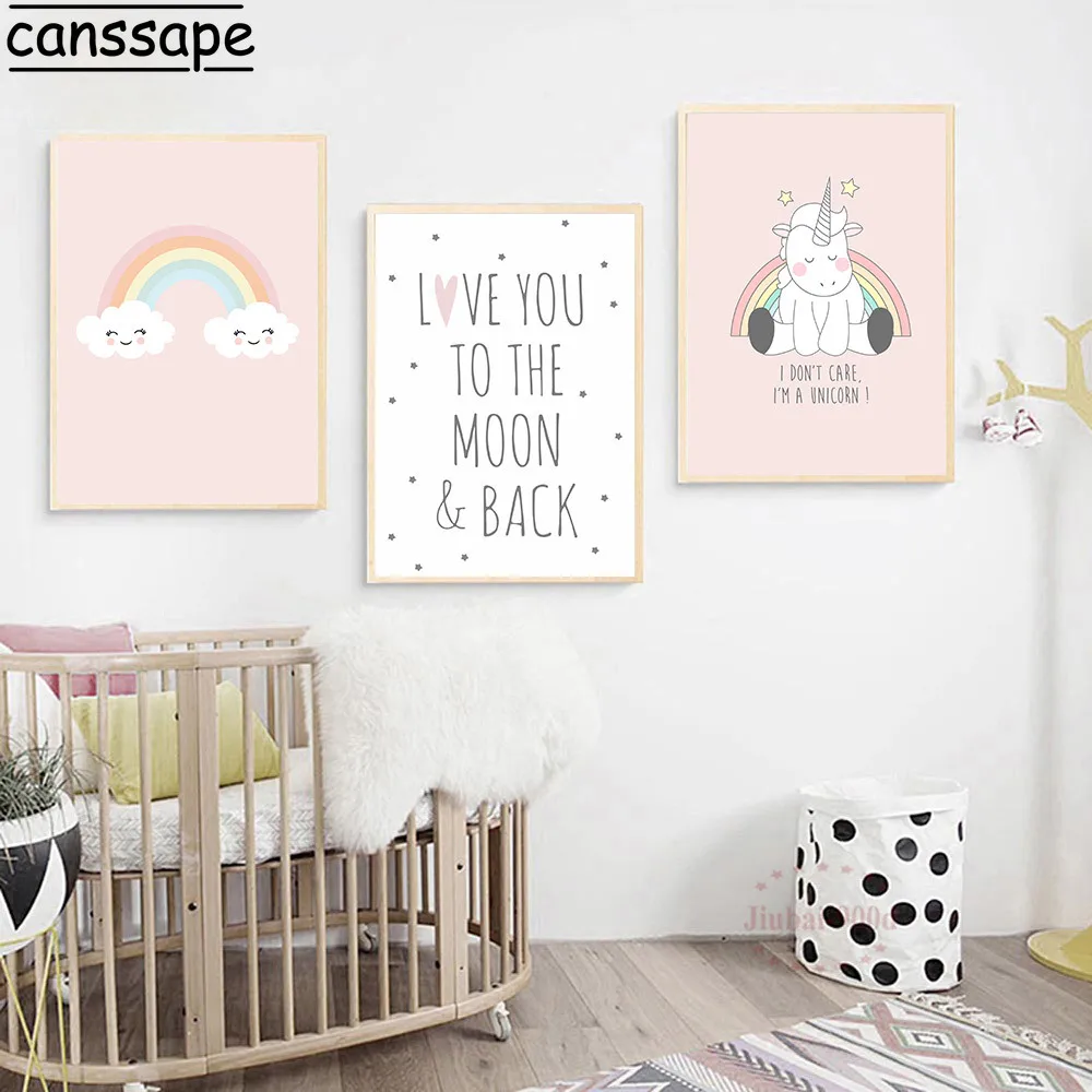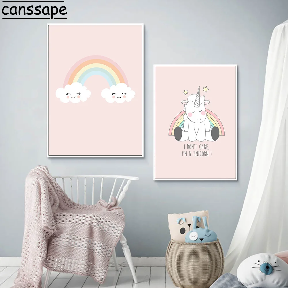 Розовая радужная картина, холст, детский постер, Скандинавское настенное искусство, картина, Постер с единорогом, Детские постеры и принты, украшение для детской комнаты
