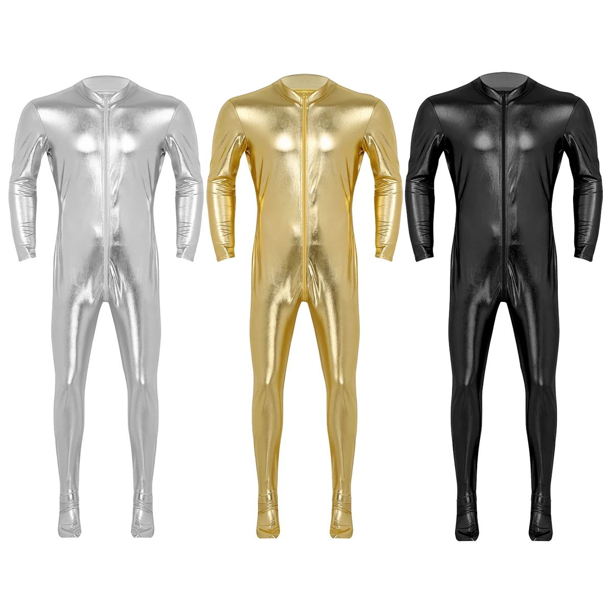 Мужской комбинезон из спандекса с металлическим блеском, Блестящий ...