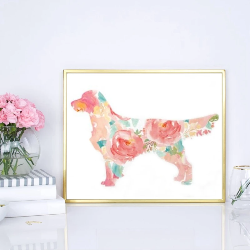 PurposeFloral Dog Poster Art Painting Home Wall Decor