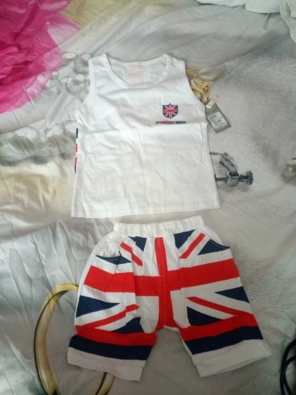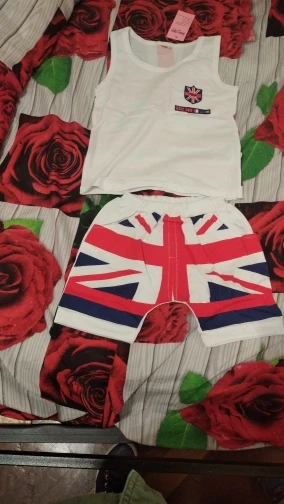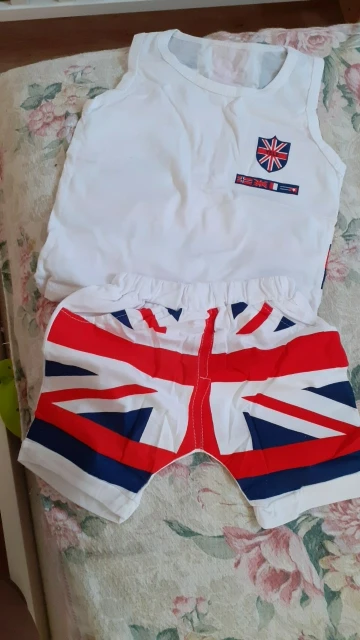 Яркий хлопковый костюмчик. Выглядит нарядно. Довольны.